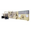 1. Supply: 380V, 50HZ 2. Power: 45KW (excluding hot melt applicators and air compressor) 3. Capacity: 1200pcs/min 4. Qualification rate: 97% 5. Outside dimensions(m): 14 x 4 x2.3 (L x W x H)(for reference) 1. Cross-cutter type, ten pieces per turn. 2. Automatic inspect and rejection function. 3. Product auto-arranged, empty package rejected. 4. Frequency control drive 5. Convey by gear-box, universal coupling and timing belts 6. Auto-splicing in running station) 7. Release paper auto-splicing. 8. Air laid eliminating dust device. |