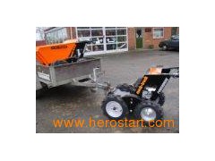 Remarks: 1. We have CE certificate for Garden Loader. 2. Qty in container: 24 pieces/20', 54 pieces/40'.Rated power 5.5Hp Transmission Peerless transaxle 4 forward / 1 reverse speed Fuel Unleaded petrol Capacity 250kg Noise Rating 79db Brake Disk Cables Protected Wheels Front 400 x 10, 4 ply tractive. Rear 400 x 8 Gross Weight 140kg Packing size 1.31*0.77*1.06m