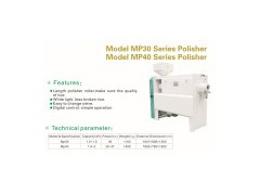 MP Series Rice Polishing Machine Features: 1. Long polisher roller to make sure the quality of rice. 2. Output shinny and less broken rice. 3. Easy to change sieve. 4. Digital control and simple operation.