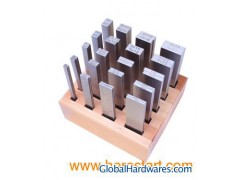 Made from high grade alloy steel, hardness HRC56-62 ,finely ground in pairs. Narrow longitudinal surface are flat, parallel and machined with precise dimensions specially process to guarantee the high accuracy steadily, no distortion for long time. Accuracy means parallelism and pair height tolerance in wooden case.