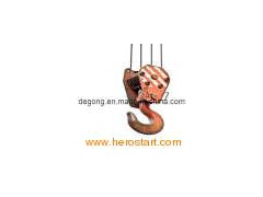 Crane hooks With blocks Strength grade: M, P, S, T, V grade Materials: M grade with DG20, or DG20Mn P grade with DG20Mn S grade with DG34CrMo T grade below 40t with DG34CrMo, more than 40t with DG34CrNiMo or DG30Cr2Ni2Mo V grade below 40t with DG34CrNiMo or DG30Cr2Ni2Mo, more than 40t with DG30Cr2Ni2Mo. Model: Single hook: 5t/6t/10t/12t/16t/20t/25t/32t/40t/50t/63t/80t/100t/125t/160t/200t/250t Double hook: 10t/12t/16t/20t/25t/32t/40t/50t/63t/80t/100t/125t/160t/200t/250t. Block model: 3.2t/ 5t/10t/16t/20t/25t/32t/50t/75t/100t/200t.
