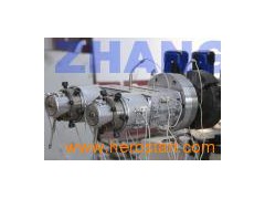 PVC double-pipe production lineMax output of extruder(kg/hr) 150-250 Vacuum tank length(mm) 3-4 Haul-off speed(m/min) 0-15 Max diameter of twin pipe(mm) Ø63 Haul-off force(N) 1000 Drive motor power(KW) 4*2