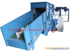 • The automatic fiber filling machine is mainly used for fillingfiber into bags.• It is assembled with automatic bale opener, fiber openingdevice and fiber blower, fiber filling device.• The whole line is adjusted by PLC control system that can behandled by only one operator with simple operation.• Weighing system that the tolerance can be around 250g.• High capacity about 2500kg per day.• A whole bale raw material can be transported to the nextprogram automatically.• Electronic metal alarm system;• The rollers are made by V-wire, so that fiber opening rate canbe 98% up without hurting the fiber and long life with lessmaintenance.• Special roller and bearing device avoid the fiber jam into thebearings.• Conveyer track protection system;• CE Certification