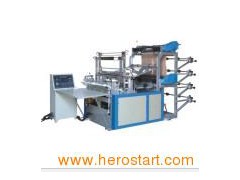 Product Description Bag making machine, sealing and cutting bag making machine USAGE This machine is suitable for cutting and sealing roll film, to form film to specific shapes, to make HDPE and LDPE T-Shirt bag, vest bags, garbage bags, flat bags, to make bags on roll and suitable for cutting plastic sheet, like pet sheet, PP sheet and others. Is a multifunctional machine for making plastic film products. FEATURE 1. The cool cutter is made of special steel, sharp and anti abrasive. Since there is a micro adjusting device, the cutter can be easy adjusted for different thickness materials. 2. The seal cut can be turned over 180 degree, so it is very convenient to renew the rubberized fabric and have routine and preventive maintenance. 3. By employing digital device and high precise and good qualified mechanical components, the machine can work freely on products of multi length with high speed. 4. Sealing and cool cutting at the same stage, no tension on feeding but the bag bottom firmly sealed. 5. The machine alarms and stops when the products has error print, by this, it reduces wastrels. 6. The feeding system consists of photoelectrical parts, stepping motor and adjusting parts, and it is easy for operation and precise for making bags 7. This machine is two tracks machine, which can make two lines bags in same time.
