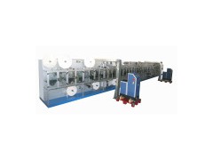 Main functions and features 1. Driving way: Main axis adopts mechanical driving which connects gearbox, universal shaft and circular arc synchronous belt. Driving components are installed on the bottom of the machine mainboard. It is more precise and lower energy consumption. 2. It can produce ultra-thin or fluffy pulp cotton core type sanitary napkin, which is fast-easy package. 3. It adopt PLC+Touchable screen+ frequency control system 4. Main raw materials automatic splicing device 5. Main raw materials tension control device to control the tension of raw materials to prevent materials to be too loose or too tight. 6. Main raw materials PE film web guide system 7. Main raw materials unqualified parts will remove automatically. 8. Production of automatic shutdown system failure. 9. Cutter material use 45 # steel, e× Tend life of the cutter. 10. Higher speed crusher machine can crush treated or untreated fluff pulp. 11. Touchable Screen: Motor switch on/off, running speed, time, countting pieces, parameter setting, alarm, error display, error enquiry (functions setting appear on screen are different according to different machine type) 12. Machine with safty door Main technical parameters A) Designed speed: 140m/min B) Running speed: 350-400PCS/min C) Product Size: Single type (product lengh can according to customers' require) D) Capacity: 140kw 380V, 50 Hz (Including glue Applicators) E) Practical capacit: 100kw Breaker: 400A F) Electricity: 3phases 4 lines 3x70mm2+1x50mm2+1x25mm2 G) The lowest air pressure: ≥ 0.6mpa, 1.3m3/min H) Total weight: About 35Tons I) Noise: < 80dB (A) J) Main machine overall dimensions: (22x5x3)M(LxWxH) K) Machine taking total space: (26x9x4)M(LxWxH) L) Container: 2x40HQ Optional device: 1. Perfume adding device 2. Inner core printing device 3. Leg cuff adding device 4. SAP ground-set absorbing system