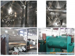 The mixer comprises transmission mechanism, horizontal cylinder, coulter and flying cutter. Under the coulter's role, the material makes convection movement along with the cylinder and cast by flying cutter with high speed rotation when passing by it, achieving uniform mixing in the shorter time.