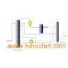 1 Quality standard The quality of finished anhydrous ethanol is mainly determined by its water content, another major factor influencing product quality is the feedstuff for production. Production anhydrous ethanol with the dehydration technology & equipments supplied by our company can meet the National-standard(GB/T678-2008)demands for high-class ethanol. Produced anhydrous ethanol with addition of denaturant is called fuel ethanol. 2 Technique Flow There are kinds of ethanol dehydration technologies. Through years of R&D and practice, our company can supply customers with two kinds of mature technologies for ethanol dehydration, namely Three-element Azeotropic Method and Molecular-siever Technology. 1) Three-element Azeotropic Technology After addition of cyclohexane into the alcohol liquid, a kind of three-element azeotropic substance will form in the mixture of alcohol, water and cyclohexane. This three-element azeotropic substance has a lowest boiling point, and it contents more water than binary azeotropic substance of alcohol and water. According to this principle, water will be taken away by this three-element azeotropic substances during the process of distillation, thus achieving the purpose of dehydration. The production process is showed as the diagram follows: The device is composed of a dehydration tower and a recovery tower, working under different pressures. Alcohol steam on the top of the recovery tower heats the dehydration tower. The finished products content water of lower than 0.05%. 2) Molecular Sieving Technology The principle of molecular sieving technology for ethanol dehydration is based on the effective absorption and deviation of water holes of zeolites. The most advanced automation control is applied in production and the operation is in alternate absorption by multi-towers, thus it is able to achieve successive dehydration and online process. When the alcoholic steam is heated to a certain temperature. It goes into molecular sieve absorption tower. The water molecules in the alcoholic steam is selectively absorbed by the holes of the siever and heat is released at the same time. Thus dehydration is achieved in this way. After being condensed &cooled, the alcoholic steam out of the dehydration devices becomes anhydrous ethanol with a high concentration of 99.5%-99.98%. When temperature reaches designed degree, monitor system can control the switches of valves. The absorption tower is switched from absorbing state to deabsorbing negative-pressure state, and the absorption stops when it reaches one certain temperature. It enters the next circle of absorption process through continous valve swiches. In this process, there are several sets of molecular-sieving dehydration equipments operated in turn. While one set of equipment is working on dehydration, the other set is on regeneration. The process flow is shown as the under diagram;
