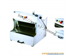 BREAD SLICER---This machine JSEBS-350E, having CE certificate, is running reliably, easy operation and safety. The machine is most suitable for slicing hard bread, French bread, with an oil lubrication system and bread pusher. It is an ideal machine to bakeries, supermarkets, and hotels. ---ITEM.NO:JSEBS-350E ;---POWER:1.1kw ;---VOLTAGE:110/220v ;---FREQUENCY:50/60Hz ;---BREAD LENGTH:350mm ;---THICKNESS OF BREAD:12mm ;---GW:136kgs ;---SIZE/CTN:76*80*82cm.