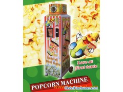 Popcorn machine is the newest small size food-making machine made by our company. This machine works by electricity. With the excellent stainless shell and the upper-scale sprayed plastic coating, this machine is designed attractively and elegantly. A highly efficient and electricity –heated system and a fan are installed in the stainless shell. The dry corn can be made to popcorn quickly and meanwhile the fan works to avoid solidification. This machine can control temperature automatically. It is a coin-putting machine, only 80 seconds after putting the proper coin, this machine can make tasty popcorn. With its fast and convenient operation, this machine will be the first choice in the bars, discotheques, amusement parks, cinemas, cafes and other entertainment places.Features and functions:Automatic temperatureLight-hint operation stepsMemorize the cooking timesVoice hint (customization)Technical data:The weight of one cup of corn: 38 gThe shortest cooking time: 80 secondsThe highest cooking temperature: 200℃Net weight: 47 kgVoltage: 220 VOthers:The min order quantity:1 unitsDimension: 350*410*1500(mm)A machine is packed in one carton, which is 160*60*50 (cm), gross weight is 60kg.