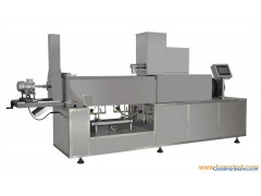1Series double screw extrusion machine mainly by the material feeding system, the backlog of system, rotary cutting system, heating system, transmission system, lubrication system, control systems.2Extrusion machine feeding system, driving system, and rotary cutting system adopts inverter, strong power and smooth operation.3Automatic lubrication, forced cooling extrusion machine, to ensure safe operation.4According to different raw materials, choose single, double screw charging system, charging even, stable and reliable.5Screw with a special processing technology, wear-resisting fatigue resistance and long service life.6Different screw length-diameter ratio and structure satisfies different process requirements.7.pet food,cat food,dog food,fish feed,corn flakes,breakfast cereals,instant noodles,protein snacks,frying or withou frying products, and son
