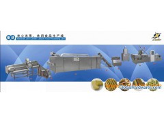 This line uses advanced extruding technology.By changing moulds and production technicals to produce many kinds ofpopular snack food in the market.It has a agility scheme strong adaptability ,The line has got lots of good praise and agreement from public1.mixer2.screw conveyer3.double-screw extruder4.core filler5.multi-function shaper6.large-hoister7.three-layer electrical roasting oven8.automatic flavoring line