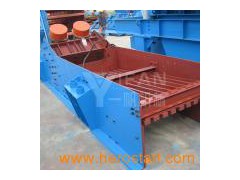 Electromagnetic Vibrating Feeder, vibrating feeder, feeder: 1. Uniform vibrating feeding 2. New-type equipment, low cost 3. Simple structure 4. ISO/CE GZT series electromagnetic vibrating feeder adopts the vibrating motor as vibration source. It is used to feed material into the primary crusher homogeneously. Meanwhile because of the bar-shaped screen, it can screen away soil contained in the raw material, increase the capacity of primary crushing. Electromagnetic Vibrating Feeder is suitable for feeding material into the first crusher in hydroelectric field, building material and mining. GZT-0932 vibrating feeder mainly adopts a pair of motors as the vibration source, which has the completely same performance and parameters. When these two vibration motors rotate reversely at the same angular speed, the inertia forces produced by their eccentric blocks will overlap or counteract each other at a special phase. Thus, a huge resultant vibration exciting force will be generated so that the machine body will be forced to vibrate on the bearing spring. This vibration is used as the power to make the material slide on the material chute and drop so that the material moves forward continuously. As a result, material feeding purpose is realized. When the material passes the screen bars of the chute body, smaller pieces of material will drop from the gaps between the screen bars and not enter the next breaking procedure. In this way, material screening result is achieved. Application range of electromagnetic vibrating feeder: In the production process, vibrating feeder can feed the lump or grainy material into the crusher evenly, timely and continuously from the hopper. During the process of sandstone production, vibrating feeder can feed the materials into the crusher continuously, and prescreen them roughly. It is widely used in metallurgy, coal industry, mineral selecting field, construction material, chemical industry and grinding material. Performance characteristics of electromagnetic vibrating feeder: 1. This series have many models. It can be specially designed and manufactured according to the customers' requirements. 2. All models of vibrating feeders can control the feeding amount manually or automatically. 3. Smooth vibration, reliable working condition, and long service of life; 4. Adjustable vibration exciter can change and control the flow at any time. The adjusting process is convenient and reliable. 5. Vibrating motors act as vibrating source, which has the characteristics of low noise, low electricity consumption, and good adjustability. 6. Simple structure, reliable operation, and convenient installation Model Max feed size (mm) Capacity(t/h) Motor(KW) Installation slope(° ) (kg) GZT-0724 450 30-80 2*1.5 10 2422 GZT-0932 560 80-150 2*2.4 10 2440 GZT-0940 560 80-180 2*3.7 10 3700 GZT-1148 600 150-300 2*5.5 10 5060 GZT-1256 800 180-400 2*7.5 10 6385 GZT-1560 1000 400-600 2*13 10 8900