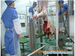 Decorticator Electric decorticator is the important equipment in the cattle slaughter line, by decorticating the cattle which is already pre-cut. It bears characteristics like simple structure, easy operation, operational reliability, and easy maintenance, etc. It is extremely suitable for the slaughter factories whose productivity is under 200 head per day. There are mechanical decorticator and aerodynamic decorticator. Two workers are needed in operating this kind of equipment, who will fasten the cattle which is in the decorticating position to the rack with shackles, and peel the hide from top to bottom. In operation, the whole process can be controlled by stopping the lift platform at different positions.