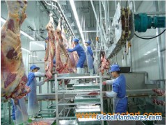 Cow Slaughtering Machine The cow to be slaughtered are relaxed first by warm shower. Then the cow leading machine will lead the cow through driving path to the aerodynamic tip trunk. Hung up, the cow then will be sent to the automatic bloodletting line by the Lift, and bleed. After changing the rails, they are sent to the five-process transporter, and the pre-cutting, decorticator, breast-opening, organ removing, half-cutting etc. Are conducted. The red and white organs taken out will be processed by the cattle synchronous hygienic inspection line, and the two halves of the split cattle will be sent to discharge the acid in the acid-discharging cabinet through the push-type track, so that we can get the beef of the best quality.