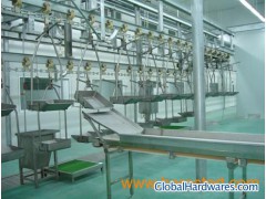 Goat Slaughtering Machine Goat to be slaughtered are relaxed first by warm shower. Then hung up, and be sent to the automatic bloodletting line. After changing the rails, they are sent to the carcass processing line, and do pre-cutting, decorticator, breast-opening, organ removing, half-cutting etc. The red and white organs taken out will be processed by the sheep synchronous hygienic inspection line, and the two halves of the split sheep will be sent to discharge the acid in the acid-discharging cabinet through the manual track.