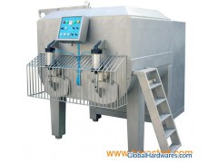BVBJ-1500 vacuum mixer is CE certificated. BVBJ-1500 vacuum mixer is completely made of stainless steel SUS304. BVBJ-1500 vacuum mixer is the dual-shaft type mixer, which also features propulsive discharge. Manual opening or pneumatic opening of the cover can be chosen. It is equipped with time setting function for moving forward, backward or pause. Different mixing paddle can be provided based on requirements. Safety guards are installed on the discharging area and the top cover.