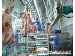 The cow to be slaughtered are relaxed first by warm shower. Then the cow leading machine will lead the cow through driving path to the aerodynamic tip trunk. Hung up, the cow then will be sent to the automatic bloodletting line by the Lift, and bleed. After changing the rails, they are sent to the five-process transporter, and the pre-cutting, decorticator, breast-opening, organ removing, half-cutting etc. Are conducted. The red and white organs taken out will be processed by the cattle synchronous hygienic inspection line, and the two halves of the split cattle will be sent to discharge the acid in the acid-discharging cabinet through the push-type track, so that we can get the beef of the best quality.