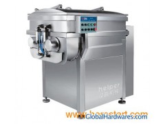 Vacuum meat mixer, mixer for meat mixing, meat blender The mixer produced by our company is developed through our own efforts combining with reference to the international advanced product features and national meat product processing technology. The vacuum devices will make the working bin in negative pressure condition, which will mix the materials evenly and inflated sufficiently. with the characteristics of no air bubble, good flexibility, bright color and the ability of extracting protein to the maximum limit, the mixer is definitely an ideal equipment to change the product quality. The whole machine is made of stainless steel, which enables the machine to have good reliability, durability, air tightness and convenience to clean. The backward open structure makes it safe and reliable. The parallel twin-axial structure and ramp type blades will make the materials at the optimum degree for various process requirements. The cycloidal gear of this machine makes transmission stable reliable, and low noise. This machine is the best of same products. MAIN PARAMETERS of meat mixer: POWER: 380V, 50Hz 2.2kw× 2+1.1kw MIXING SPEED: 42r/min BOX CAPACITY: 300L AIRPRESSURE: 0.5Mpa WEIGHT: 600Kg DIMENSION: 1190× 1010× 1447(mm)