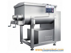Vacuum meat mixer, mixer for meat mixing, meat blender The mixer produced by our company is developed through our own efforts combining with reference to the international advanced product features and national meat product processing technology. The vacuum devices will make the working bin in negative pressure condition, which will mix the materials evenly and inflated sufficiently. with the characteristics of no air bubble, good flexibility, bright color and the ability of extracting protein to the maximum limit, the mixer is definitely an ideal equipment to change the product quality. The whole machine is made of stainless steel, which enables the machine to have good reliability, durability, air tightness and convenience to clean. The backward open structure makes it safe and reliable. The parallel twin-axial structure and ramp type blades will make the materials at the optimum degree for various process requirements. The cycloidal gear of this machine makes transmission stable reliable, and low noise. This machine is the best of same products. MAIN PARAMETERS of meat mixer: POWER: 380V, 50Hz 2.2kw× 2+1.1kw MIXING SPEED: 42r/min BOX CAPACITY: 300L AIRPRESSURE: 0.5Mpa WEIGHT: 600Kg DIMENSION: 1190× 1010× 1447(mm)