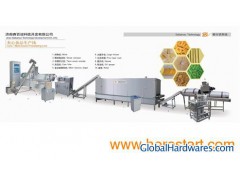 Core-filling food processing line can use corn, rice and other grain as main materials. It can take chocolate, cheese and cream as stuffing materials, which can be mixed with yolk, milk powder, and gingili sauce. We can feed the stuffing into extrusion food just before it is extruded from extruder by core filler. This kind of core-filling food tastes crispy and delicious, such as core-filling pillow, tube and wafer.