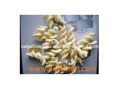 1. Snack Pellet Chips Processing Line 2. Potato crispy processing line 3. Pellet snack food machine 4. Fired pellet processing line 5. Snack pellets processing line 6. Macaroni machine 7. Crispy snack processing line Pellet chips processing line can process any type of starch-based raw material such as potato starch, corn and wheat flour. Advanced extruder technology makes changeover between processing conditions quick and efficient. New product shapes are easily configured with a die change which is simplified by the Evolum die-face former design. This line is characterized by unique technique, rational configuration, high automation and stable performance. It can finish steaming, extrusion and shaping in one step without boiler We can produce the pellet into different shapes, such as shell, screw, square tube, round tube, and wave ect.