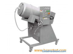 The machine is completely made of stainless steel SUS304. BVRJ-150 vacuum tumbler massages the fresh lumps under vacuum condition, the meat is tenderized, so that it absorbs full brine and dissolves the protein. This machine adopts mechanical stepless speed regulation to meet the requirements of various meat products. Safety mechanisms are installed on the top cover and discharge area. Dimensions: 1340x650x1200 mm Weight: 240 Kg Capacity: 100 Kg/cycle Tumbler rotation speed: 4~21 rpm Vacuum Pressure: 0.055~0.08 MPa Volume: 150 L