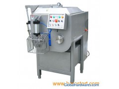 The machine is completely made of stainless steel SUS304. BVBJ-300 vacuum mixer is the dual-shaft type mixer, which also features propulsive discharge. Manual opening or pneumatic opening of the cover can be chosen. It is equipped with time setting function for moving forward, backward and pause. Different mixing paddle can be provided based on requirements. Safety guards are installed on the discharging area and the top cover. Dimensions: 1480x980x1550 mm Capacity: 220 Kg/cycle Mixing speed: 21/31 rpm Volume: 300 L Pressure from air source: 0.4~0.8 MPa Vacuum pressure: 0.055~0.08 Mpa Weight: 500 Kg