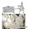 Automatic dumpling-making machine is developed by our company, which integrates rolling, stuffing, making and collecting the dumpling coats. It is the first large-scale dumpling automatic production line with independent intellectual property rights, and initiates the localization of automatic dumpling making machines. The high degree of automation with PLC controll, human-machine interface, imported servomotor maximally guarantees its excellent performance. Its high efficiency greatly saves the labor force and provides a solution for labor shortage enterprises. Both the thickness of the dumpling coat and the farcing dosing can be adjusted, so it is applicable to various shaping of dumpling. Our automatic dumpling machine is the most advanced dumpling production line in China.