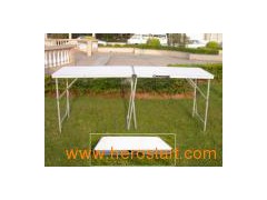 SIZE 200x60x80CM CANTON SIZE 102x7.6x63CM N. W: 8 kgs G. W: 9.5 kgs 20'FT: 620 pcs 40'FT: 1290 pcs HQ: 1460 pcs Lightweight but extra strong Made from aluminium...No rust! ! Stylish aluminium surface makes it easy to clean Folds in seconds to fit in a highly portable carry bag Multi-functional: Ideal for beer pong game, market stall holders, camping, caravanning, car boot sales, exhibitors, decorating, and many home uses