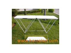 SIZE: 242X80X80CM CANTON SIZE: 123X7.8X83CM N. W: 11.2 kgs G. W: 13.2kgs 20'FT: 370 PCS 40'FT: 760PCS HQ: 880PCS Lightweight but extra strong Made from aluminium...No rust! ! Stylish aluminium surface makes it easy to clean Folds in seconds to fit in a highly portable carry bag Multi-functional: Ideal for market stall holders, camping, caravanning, car boot sales, exhibitors, decorating, and many home uses