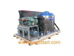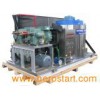 The range of ice making capacity is from 500kg/day to 50T/day, evaporator is an insulated double wall stationary cylinder mounted in vertical position. Water is pumped into the top tray and distributed inner surface in a continuous water curtain, then is will be frozen by the low temperature refrigerant between the cylinder walls, the evaporator is of the direct expansion type, at lat the ice knife removes the ice from the wall without touching the inside surface of the cylinder. As the ice is produced through the inside of the cylinder, the refrigeration system is completely sealed. Refrigerant losses due to moving parts in the refrigeration system can not occur.