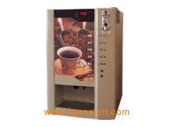 3 Selection Hot Coffee Vending Machine Item No.: HV-301MCE 1. Power Supply: AC220V~240V 50Hz or AC110V~120V 60Hz 2. Canisters: 3 canisters with 3 mixers 3. Selections: Any 3 kinds of premixed drinks ( e. G. - 1. Coffee; 2. Hot Chocolate 3. Cappuccino; ) + Cold water 4. Water tank volume: 4L 5. Hot water volume: 1.6L 6. Cup Dispenser: With capacity of 140PCS of 6.5oz Paper cups 7. My-Cup: The user can choose to use their own cup by pressing "My-Cup" Button on panel. 8. Coin Acceptor: TR315 Multi-Coins Acceptor accepting 1~3 denomination coins. 9. Way of Water Supply: Defaulted with water bottle on the top; Optional for water pipe in the back with surcharge 10. Display patten: LED & FND 11. Machine Size: 430x490x650mm 12. Weight: 23KG (net) / 28Kg (gross) 13. CE certificated. 14. Color availability: Black, White, Brown, Camel, Grey Optional: 1. Common Metal Cabinet; 2. Metal Cabinet with water Pump inside. For more details, please feel free to contact us!