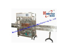 Automatic Oil filling machine for 1000ml --- 5000ml Accurate series flow filling machine is on the basis of original model, as per the production requirement. Adopts the suggestions from broad manufacturers. Reserves measuring core device technology, learn advanced filling process controlling technology from Europe and America developed country. CPU adopts OMRON etc. Which is international leading products. Imported human-computer interface which is full color touch screen. The whole filling process is finished with one key. It is not matched by same trade in domestic. In comply with the using standard of GMP enterprise. It's suitable for liquid: All kinds of concentration, high viscosity liquid, mainly used in oiling filling (edible oil, engine oil etc. ) Technical features: Unique multi-model filling head and drag up system which is design for no leak to ensure production field and finished products can't be contaminated by liquid. High-precision flow gauge with imported human-computer interface which is full color touch screen, in order to insure the simply, shortcut and accurate adjustment between volume. Convenient to adjust bottles distance and bottles height. We can specialized in designing the filling DIP angle between 0-45 to adapt the filling for bevel connection bottles: Filling mouth flushing liquid has two types, one is inclined flushing, the other one is vertical flushing. The purpose is to adapt all various kinds of liquid to fill. Inclined flushing is suitable for the liquid which is easy to be spumous. Filling mouth fixed position includes two types, plug-in type and suspended type to suit different height filling. Planet drill plate stepless adjuster driven SS plating conveyor. Coordinate multiple operation's cogradient neatly. Photoelectric tracking, procedure auto controlling, PLC adopts OMRON etc. International famous brand, make the process be more flexible. Main pneumatic and electrical component adopts imported accessories, insure the stable system, excellent quality. Feed liquid by pump pressing can improve the production capacity drastically. Model: GC-4A Filling range: 1000ml --- 5000ml Production capacity: 900-1200BPH Filling precision: ≤ 1% PLC: OMRON BRAND Touch screen: VEINVIEO Power: 220V, 50Hz, 500W Material: SS304