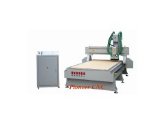 Woodworking CNC Router Pioneer 1325X This is a professional woodworking and advertising cnc router machine, it has Good stability, high spead, high accuracy, competitive price and good after service. High speed style. Adopt thicken square pipe for whole structure, high speed gear wheel and Italy air cooling spindle. Wood working area: Waving board, cabinet door, solid wood door, craft wood door, no-paint door, folding screen, craft window, shoe polisher, game machine cabinet, Ma-jiang Table, computer table and panel type furniture. Advertising Area: Making advertising products made from Brand Board, Acryl cutting, mould and some other material. Mould Area: Metal mould eg: Engraving copper, aluminium and iron, and nonmetal mould eg scagliola, sandstone, plastic board, PVC pipe, wood sheet etc. Other area: Art and craft area, embossment and engraving photo. NO. Description Parameter 1 Table size 1480× 3000mm 2 X, Y working area 1300× 2500mm 3 Z working area 200mm 4 Max. Speed >30m/min 5 Interface USB 6 Command G code*. U00*. Mmg* plt 7 Surroundings for software windows98/2000/xp 8 Power(spindle is not included) 8.87W 9 Working voltage AC380V 50Hz 10 Spindle power (domestic made) Italy 6KW HSD air cooling spindle 11 Spindle rotating speed 0-18000rpm/min 12 Drive Motor Stepper