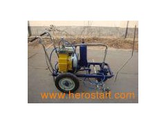 Technical Parameter: 1. Engine: Original Honda 5.5HP 4-stroke air-cooled gasoline engines. 2. Chassis: Rugged welded frame, the surface is chrome-plated (zinc) or has been anti-corrosion coating processed, and the chassis is configured with imported high-speed bearings to ensure the machine is more lightweight and more flexible. 3. Rubber Wheel: Left wheel, right wheel and rear wheel are inflatable vacuum wheels which are pressure-proof. Wheel diameter: 350mm; The front jockey wheel is natural rubber wheel that is of special wear-resistant modification. Wheel diameter: 190mm. 4. Front directional device: You can lock the directional device of the front wheel to ensure that the road marking machine turn freely whether it is along a straight line or a curve turning. 5. Guide rod: It can be freely adjusted. 6. Pump: We adopt the new diaphragm-type high-pressure paint-free pump machines manufactured by Chongqing Yangtze River Application Co., the pump flow rate is high and the pressure is steady, and it is reliable. The machine is appliable for cold solvent road marking paint. The maximum pressure 20mpa (working pressure for the 10-15mpa), the maximum flow of a single pump is 9L/min. 7. Paint cans (optional): Capacity: 50Kg. Tank is equipped with a filtering device and the feed port is equipped with suction-type filters. 8. Spray gun: Configured with two new manual spray guns and hard-edged cylindrical nozzle which is of the function of reverse decontamination (17/25 or 20/25). Marking of non-arc nozzles are to ensure alignment. Brake controller is to insure the sigle cylinder and the double cylinder alternate freely 9. Paint: It is appliable for cold solvent road marking paint. 10. Spray width: 80-450mm. 11. Dimensions: 1350 mm (length)* 1000 mm (Width) *1070 mm (height). 12. Total Weight: 135kg (without drums).