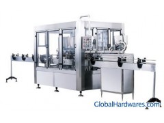 The machine is mainly used in the beverage filling operations. The three functions of bottle wash, fill and seal are composed in one body of the machine. The whole process is automatic. The machine is used in filling juices, mineral water and purified water in bottles made of polyester and plastics. The machine can also be used in hot filling if being installed with temperature controlling device. The handle of the machine can be freely and conveniently turned to adjust the machine to fill various types of bottles. The filling operation is faster and more stable because the micro pressure filling operation of the new type is adopted. There the output and benefit of the machine is higher than the machines of the same specifications. The advanced OMRON programmed controller (PLC) is adopted to control the machine to run automatically while a transducer is used in the bottle -entering chains to adjust speeds and coordinated with the transducer of the main machine to make the operations of moving bottle forward steadily and reliably . It is convenient to operate with higher automation because every part of the machine is inspected to run with photo electricity, On the bases, the filling parts of the machine can be changed into filling methods of lower vacuum. The filling category of lower vacuum (Z type machine) is applicable in glass bottles, filling alcohol, soy and such like materials. The aluminum theft proof cap and plastic cap can be adopted. The machine is an idea-preferred equipment for beverage makers.