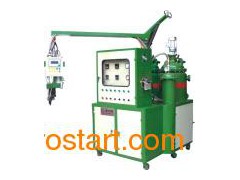 Main feature 1- Two component dispenser 2- Casting perhaps in the form of pressure (<2 bar) or vacuum (a few mbar) 3- Dynamic mixing system products: Turbine with variable speeds from 1000 to 6000 rpm 4- The constant recycling of products using computer-aided control injection / recirculation at constant pressure provided by pneumatic valves regulating pressure: Patent. 5- Control of the machine using an electronic map with a constant display the basic parameters of injection (flow, temperature, pressure...), 20 compounding the mixture in memory 6- Automatic cleaning heads 7- Possible flow rate from 0.5 to 3000 g / min, changes the ratio of the components.