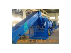PET washing machine is mainly used to recycling the waste PET bottles and to get clean flakes Features: 1)Belt conveyer (transporter with metal detector) 2)Pre-washing machine 3)Manual sorting machine 4)Crusher: 5)Hot water washing chamber: 6)Friction washing tank 7)Floating washing tank 8)Centrifugal dryer: 9)Drying bunkder by electricity or 10)Electrical control panel 11)Water sewage plant: Complete water sewage plant to recycle and Reclaim of sludge. PET bottle recycling machine/line 1. Bale opener 1Set Open the baled PET bottles into individual bottles, controlled by inverter 2. Small manual sorting belt 1 set Simply pick out the steel wires, films or other big impurities. 3. Belt conveyor 1 Set Delivery bottles to the pre-washing machine. 4. Pre-washing machine 1 Set Peeling the 90% labels and 50% caps of the bottles, washing the bottles by cold water. Clean bottles will be convenient for manual sorting and it will be more efficient to increase the capacity of the crusher. 5. Manual sorting belt 1Set The belt length is 6 m, the workers separate different color bottles and non-PET materials. It's equipped with metal detector. 6. Crusher 2 Set This crusher is designed for wet crushing. It is equipped with eight rotating and four stationery knives. Crusher is supplied with standard grid size of 12mm and spare grid of 10 mm(Custom made). 7. Screw conveyor 1 Set Transport flakes to the hot washing. 8. Hot water washing chamber 2Set Washing the flakes from labels, dirt and other residues by water heated to 85 ° C. Overflow on top of washing chamber, remove cups and rest of the paper. The water heated by steam from steam boiler, or burn the water directly from the bottom by oil or gas. 9. Friction washing tank 1Set The flakes are efficiently cleaned insight in drum with blades on rotor turning 1, 200RPM. Flakes are rubbing against each other as well as against the rotating auger. The auger moves the flakes forward and clean last remains of dirt. 10. Floating washing tank 2 Set Flotation/sink tank separate the material according to their density. PET sinks to the bottom and is discharged by a screw conveyor. Remains of caps and rings made of PE and labels of PP float on the top and are moved by rotating shovels to side of washing tank. Small screw conveyor takes them out. 11. Centrifugal dryer 1Set The wet flakes are dewatered in horizontal centrifuge. Flakes are dry to 2.5% of humidity. 12. Drying bunker 1Set Drying the flakes by electricity of 11kw, 2000L storage silo has fan blower conveyor filling station to the big bags 13. Electrical control systems 1 Set Whole line is controlled via two main control boxes and two panels. Switch to each machine on the panel, plus frequency control display. 14. Water sewage plant: Complete water sewage plant to Recycle and reclaim of sludge Capacity: (Bottles in) 500kg/hr, 1, 000kg/hr and 2, 000kg/hr, 3000kg/hr Moisture of final flakes: Less than 1.5%. Plastic PET washing line Working stages: Unpacking and cutting ---> belt conveyor---> cap and label removing ---> crushing ---> washing under hight temperature ---> precipitation and risning ---> drying ---> dehydrating ---> final products Input: Whole waste PET bottle Output: Cleaning bottle flake. Come up to standard conmintation rate <1% wate rate 1-2% high automatic: Three persons operate the whole line.