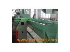 PET bottles recycling machine/line: Features: 1)Belt conveyer (transporter with metal detector) 2)Pre-washing machine 3)Manual sorting machine 4)Crusher: 5)Hot water washing chamber: 6)Friction washing tank 7)Floating washing tank 8)Centrifugal dryer: 9)Drying bunkder by electricity or 10)Electrical control panel 11)Water sewage plant: Complete water sewage plant to recycle and Reclaim of sludge. PET bottle recycling machine/line 1. Bale opener 1Set Open the baled PET bottles into individual bottles, controlled by inverter 2. Small manual sorting belt 1 set Simply pick out the steel wires, films or other big impurities. 3. Belt conveyor 1 Set Delivery bottles to the pre-washing machine. 4. Pre-washing machine 1 Set Peeling the 90% labels and 50% caps of the bottles, washing the bottles by cold water. Clean bottles will be convenient for manual sorting and it will be more efficient to increase the capacity of the crusher. 5. Manual sorting belt 1Set The belt length is 6 m, the workers separate different color bottles and non-PET materials. It's equipped with metal detector. 6. Crusher 2 Set This crusher is designed for wet crushing. It is equipped with eight rotating and four stationery knives. Crusher is supplied with standard grid size of 12mm and spare grid of 10 mm(Custom made). 7. Screw conveyor 1 Set Transport flakes to the hot washing. 8. Hot water washing chamber 2Set Washing the flakes from labels, dirt and other residues by water heated to 85 ° C. Overflow on top of washing chamber, remove cups and rest of the paper. The water heated by steam from steam boiler, or burn the water directly from the bottom by oil or gas. 9. Friction washing tank 1Set The flakes are efficiently cleaned insight in drum with blades on rotor turning 1, 200RPM. Flakes are rubbing against each other as well as against the rotating auger. The auger moves the flakes forward and clean last remains of dirt. 10. Floating washing tank 2 Set Flotation/sink tank separate the material according to their density. PET sinks to the bottom and is discharged by a screw conveyor. Remains of caps and rings made of PE and labels of PP float on the top and are moved by rotating shovels to side of washing tank. Small screw conveyor takes them out. 11. Centrifugal dryer 1Set The wet flakes are dewatered in horizontal centrifuge. Flakes are dry to 2.5% of humidity. 12. Drying bunker 1Set Drying the flakes by electricity of 11kw, 2000L storage silo has fan blower conveyor filling station to the big bags 13. Electrical control systems 1 Set Whole line is controlled via two main control boxes and two panels. Switch to each machine on the panel, plus frequency control display. 14. Water sewage plant: Complete water sewage plant to Recycle and reclaim of sludge Capacity: (Bottles in) 500kg/hr, 1, 000kg/hr and 2, 000kg/hr, 3000kg/hr Moisture of final flakes: Less than 1.5%. Plastic PET washing line Working stages: Unpacking and cutting ---> belt conveyor---> cap and label removing ---> crushing ---> washing under hight temperature ---> precipitation and risning ---> drying ---> dehydrating ---> final products Input: Whole waste PET bottle Output: Cleaning bottle flake. Come up to standard conmintation rate < 1% wate rate 1-2% high automatic: Three persons operate the whole line