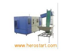 roduct Description Operation: He standard operation of HY-A4 stretch blow molding machine includes four steps as follow Step 1. Put the preform into preform container and the conveyer will take the preform to orientation units automatically. Step 2. Load the preform at neck up to preform holder, and then preform is conveyed into baking tunnel. Step 3. After heating, preform is conveyed into the blow station, then close the mold, stretch and blow under low pressure and high pressure, exhaust, open the mold. Step 4. The finished bottle is taken off by automatic discharging system
