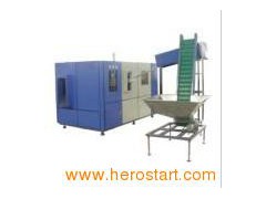 Product Description HY-A6 is the fastest liner blow molding machine in mainland of China by now.HY-A6 reaches around 5000BPH for 500ML bottle.Its baking tunnel is separated from the blow station so that time for mold opening is shortened with a result of speedy blowing and high output, damage to machine is lessened so as to keep reliable performance and prolong service life, as well as machine runs more smoothly and steadily. HY-A6 automatic stretch blow molding machine is equipped with patented preform loading system, which consists of two manipulators:Rectilineal manipulator and overturning manipulator.The rectilineal manipulator moves preform with neck up to the preform holder, after heating, the overturning manipulator grips heated preform and overturn 180 put preform to blow station with neck down.After stretching and blowing, the bottle is taken off by overturning manipulator.The specially designed preform loading & bottle discharging system avoid possible damage to preform & bottle during transportation. HY-A6 is controlled by PLC.The whole process from preform feeding to bottle discharging is completed automatically with advantages of labor saving and no pollution.HY-A6 consists of three main parts:Preform loading system, Heater channel & blow station.