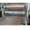 PE wood plastic sheet production line Screw adopts special mixing function and high plasticizing capacity design. Coat-hanger die use a special double flow design which allows more precise adjustment to sheet thickness. Temperature control of can accurately control the plasticizing process and sheet thickness. Three Roll-ray machine adopts vertical lifting method. Sheet thickness control with a two-way roller screw adjustment and precise control of sheet thickness can be adapted. The roller temperature control system can precisely control the temperature ensures sheet thickness uniformity. Cutting machine: Synchronize cutting, and plate length has the numerical precision. Winding device used in high torque motor, is able to adjust the speed and tension retractor. Equipped with automatic meter device, it can be set to the length of the products.