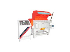 SWP300 plastic film crusher is a retrieving device for waste plastic film sheet. The machine is suitable for crushing foam plastic, film sheet and defective plastics runners to plastic granules. The machine is also suitable for smashing all soft plastic sheet and waste plate. Working Principle Feed the waste material from feeding hopper into breaking room by workers. The waste plastics is cut and crushed by rotating removable bit and fixed bit continuously. The conformable crushed granules fall into the lower hopper through screen mesh, and are drawn and packed to bag by wind transfer unit.