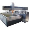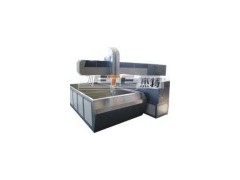 Traverse speed: 0~12000mm/min Control Accuracy: ± 0.01mm Cutting Accuracy: ± 0.1mm Width of Incision: 0.4~1.2mm Common configuration: Imported high precision zero clearance Ball Screw and Line rail. Imported digital AC servo system. Full-automatic lubrication system. Dedicated Ceramics cutting fixture. Full Set of UHP Generator from Germany Pressure Range 0~420MPa Motor Power 50HP/37KW Power Supply 50Hz/380V Pressurization Rate 20: 1 KMT Cutting Head Integrated cutting assembly Abrasive waterjet nozzle is ROCTEC Orifice: 0.17mm/0.25mm/0.26/0.28 UHP Pump system Pneumatic UHP switch. "SUNNY" UHP Intensifier and control valve imported from U. S UHP assembly from "JET" in U. S CNC -aided automatic control. Pressure blocking and adjustable low pressure drilling function. Tube between Generator and Machine is NOVA brand from Switzerland Sand Control system Adjustable sand control Valve Manual sand supply (Automatic supply system is available ) Capacity of sand tank: 10Km Water switch system Adjustable UHP switch assembly Water Cutting Dedicated Software GT (developed with Nanjing University) or WH(Shanghai) software, can read Drawing very fast. CAD/CAM system Model: GT-card. Compatible format: DXF, DWG, IGS, PRT, ASC, STL, NFL, STEP, etc. Can automatically transform, adjust and add special parameters according to the Material, thickness and processing demand. Enlarge the database automatically. Read CAD drawing and scan scan BWP format drawing, and programming Automatically Can generate the cutting path and optimize cutting order. Can automatically add engage and retract line. Automatically compensate the radius of the cutting head. Breakpoint memory. Can simulate the cutting process on the computer. Can generate the NC program. DNC Transport and cutting simultaneously. Can complete any complicate plane cutting After service Whole-life service, refer to the warranty card. Offer free training to the technician of the buyer. Overseas training fees should be undertook by the buyer. Install and operating train content The basic principle of water jet cutting machine. The principle of UHP system and maintenance. UHP seal and the replacement of component. How to Judge and eliminate common fault. The operation of control software. NC programming. The maintenance and protection of cutting platform. Maintenance and replacement of high pressure water switch, cutting head and sand control valve. Free installation and debugging. Alert: Overseas buyer should undertake the fees of travel, board and lodging Characteristics. Can complete the forming of different kinds of complex patterns. Flying-arm design guarantee convenient material loading. Cool cutting, do not cause transformation and heat effect. No pollution, do not cause poisonous gas and dust. Can cut almost all kinds of hard and fragile material, such as glass, ceramic, Stainless steel, and soft material, such as leather, rubber and cloth. Can be the sole cutting method of some composite, fragile and complicate Material. The incision is smooth without slag and do not require retreatment. Can complete drilling, cutting and forming in one process. Decrease the cost. Highly automatic. Can work all the day.Product name Flying-arm waterjet cutting machine tool Model JETE-301550BF Table Size 3000*1500(mm) UHP generator JETE all series Structure Flying-arm CNC system Standard CNC system Adaptive products Refer to concrete demand Terms of service 12 months Highest pressure 420Mpa Working pressure 380Mpa UHP gengerator Imported Main motor power 37KW Application All Metals ; Steel, titanium alloy and other high rigidity material