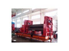 The machine adopts 3-roller symmetrical structure with the upper roller moving vertically in the center between the two lower rollers, which is achieved through the drive of the screw, the two lower rollers rotates, and provides the plate materials with torque through the engagement of the output gear of the moderator with the gear of the lower rollers. The disadvantage of the machine is that the ends of the plate materials need to have the help from other equipment for per-bending. Fnction of machine 1. The upper roller can move vertically SA well as horizontally. It has double function of re-bending and rounding. 2. The upper roller is in drum-type. And support roller is added to the lower roller. Through regulation of the support roller, it can coil high precision products to the exten of thin-thinck plates. 3. Realize pre-bending and cone bending function. 4. Perfect pre-bending and cone bending function. Specification The maximum coil thickness (mm) Maximum coil width (mm) Plate yield limit (Mpa) Speed coil (m/min) Coil diameter of the smallest full (mm) The roll diameter (mm) Diameter of the roller (mm) Under the roller center distance of two (mm) Main motor power (kw) W11-40*3500 40 3500 245 3.5 1600 540 480 750 18.5