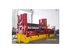 The top roller can move horizontally and lift, the top roller lift for changing curvature of plate, horizontal move for symmetry of top roller and two bottom rollers axes line vertical surface, realize technics requirement of plate end bend and other bend, there is no need of pressure machine in manufacture. The machine can finish two end of plate pre-bend and shape and straighten at the same time without return. 1. High precision end pre-bending Setting length of vertical side freely, add press on top roller for pre-bending, finishing high precision pre-bending. 2. High precision work piece Top roller is drum type, bottom rollers balance for cooperating adjustment, continual bend, it used for sheet and thick plate. 3. Various bend shape It can roll O, U, R type work piece and stated taper through assistant taper device. O type bend: Back bend method; Type bend: Front bend method; R bend: Combinations bend method.