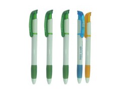 Plastic ball pen with rubber grip. Simple while classical design. Printting logo is available.