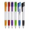 Plastic ball pen with soft grip Material: Metal Size: Regular size Refill color: Blue Widely used for promotion Logo available