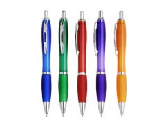 Plastic ball pen with novel design. Colorful carrel and flowing line.