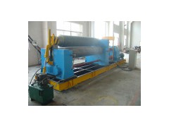 Mechanical symmetry three-roller rolling plate machine Performance and characteristics Its top roller do vertical lift at the center symmetry position of bottom rollers through screw transmission, two bottom rollers rotating provide torque for rolling plate, through joggle of output gear of gear reducer and bottom rollers. The machine needs other assistant equipment for pre-bend plate end. Note: The machine that more than 25X2000 adopts discharge by hydraulic connection plate.